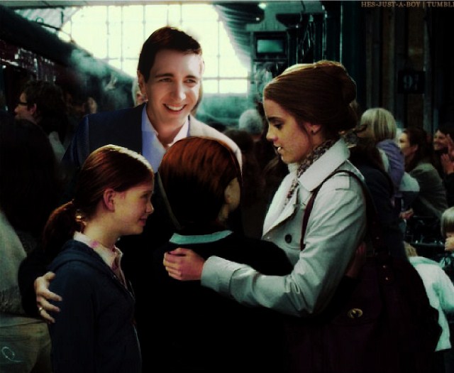ราวกลับดูหนังรักม้วนเดิมซ้ำไปซ้ำมา เฮอร์ไมโอนี่ลดไม้กายสิทธิ์ลงแม้ภาพดังกล่าวจะหายไปแล้ว แต่คำพูดของเฟร็ดยังคงก้องอยู่ในหัวของเธอจนแก้มนวลเริ่มขึ้นสีแดงด้วยความเขินอาย ก่อนจะรู้ตัวอีกทีก็ถูกชายหนุ่มผมแดงสวมกอดอย่างอบอุ่น